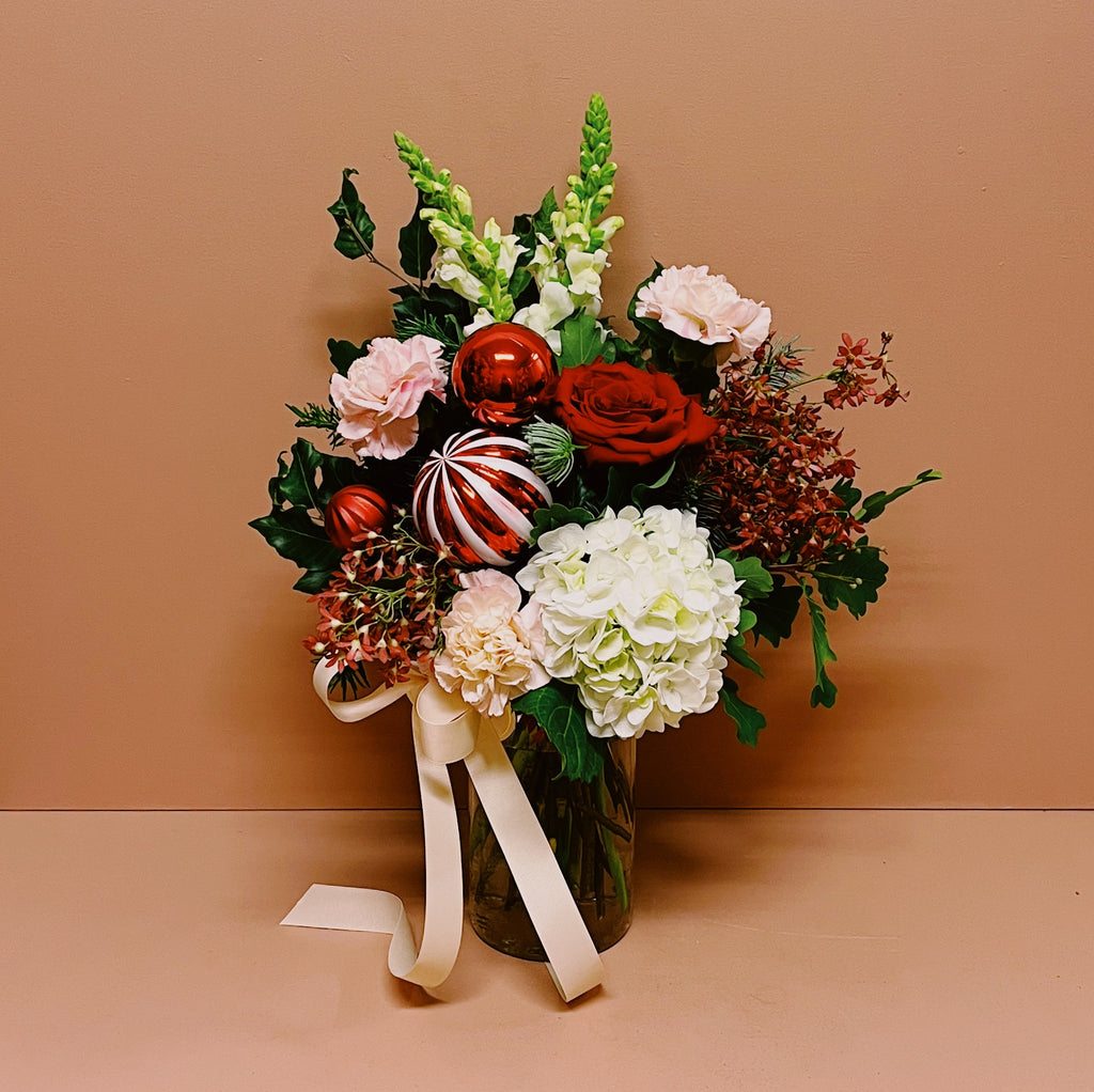 Get ready to deck the halls and delight your loved ones β our Christmas range is full of beautiful blooms and festive cheer! Perfect for gifting or adding a touch of magic to your home, this collection features long-lasting flowers including elegant orchids, premium Ecuadorian roses, enduring carnations, and stunning hydrangeas. Each arrangement is paired with lush festive foliage and pops of Christmas color, bringing that extra sparkle to every corner of your home.