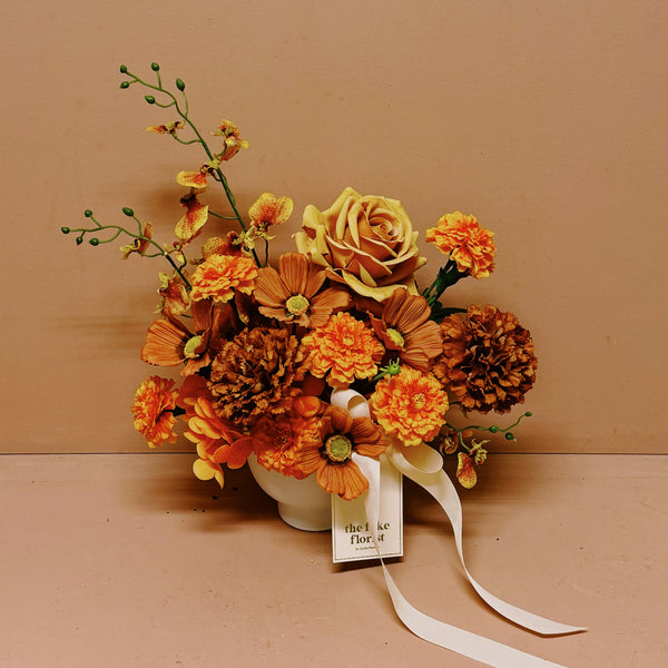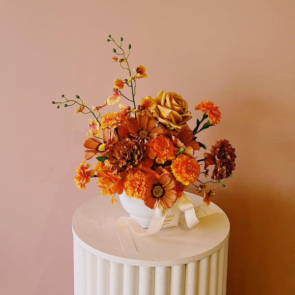 Displayed in a white footed ceramic pot and measuring approx 30H x 34W.