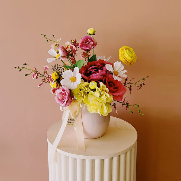 Displayed in a soft pink ceramic pot and measuring approx 44W x 38H